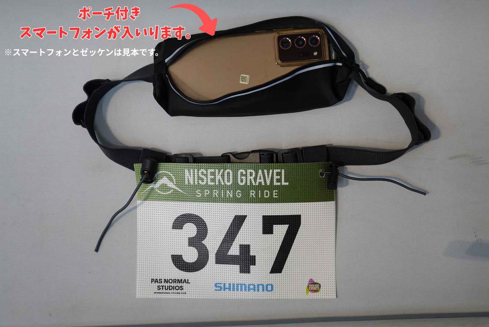 スマホ・ドリンクが入るポーチにループ (補給食ホルダー)が付いたレースナンバーベルト ゼッケンベルト レースナンバーベルト ポーチ・ループ付き トライアスロン マラソン サイクリング 男女兼用 レースベルト ナンバーベルト