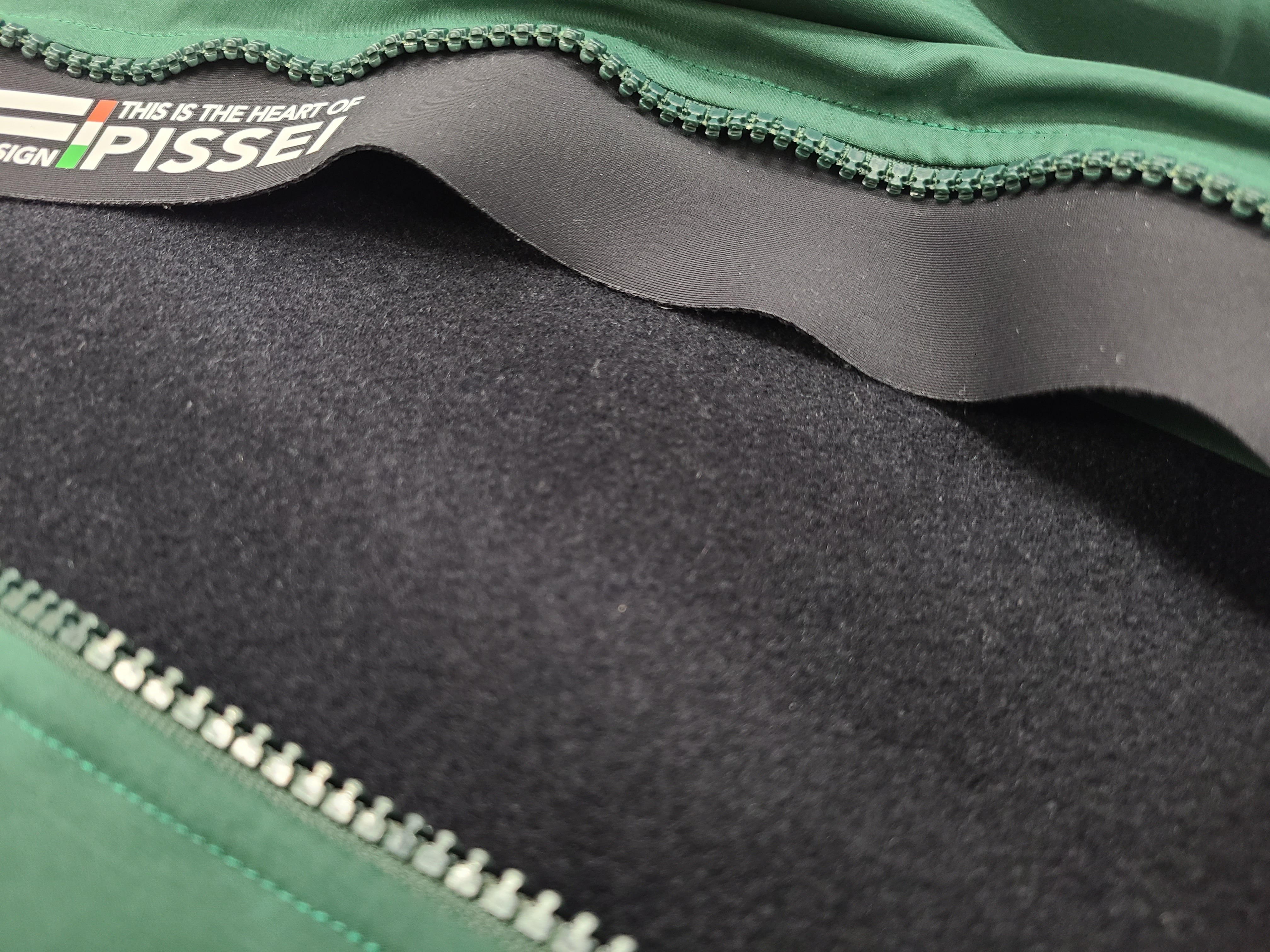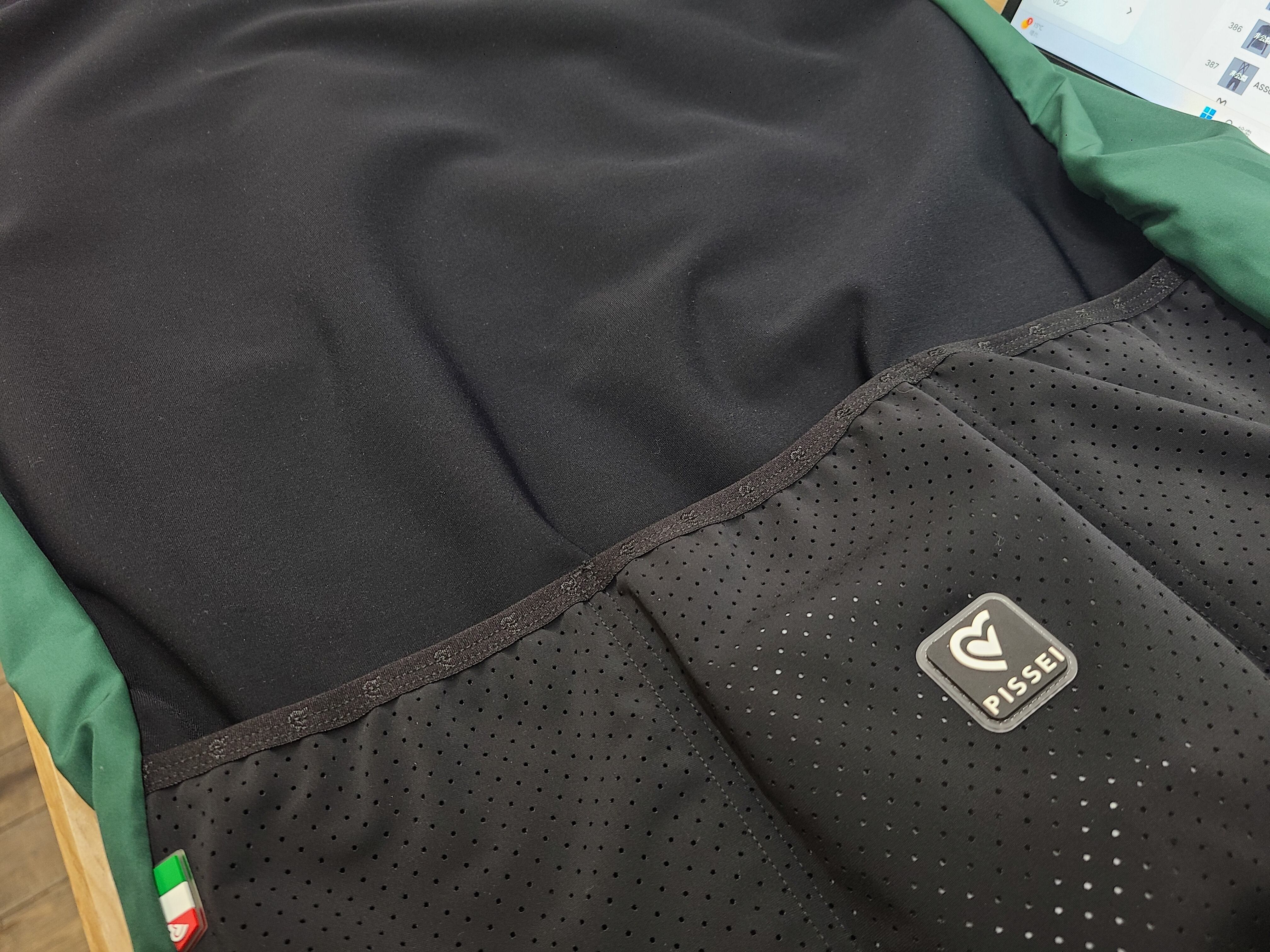 フロント部分は防風、リア部分は通気を考慮されたサーマルフリースが採用されています。